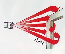 La pulverizarea convențională cele mai mici pierderi sunt la finisarea panourilor drepte, fără prelucrări mecanice. Pierderile cresc pe măsură ce apar prelucrările, iar suprafața de lăcuit se îngustează. Este cazul ramelor, elementelor sculptate sau scaunelor. Pierderile teoretice în cazul panourilor sunt în acest caz de 20%, ajungând la 60% la scaune. În realitate însă pierderile de material de finisare sunt mult mai mari ajungând și chiar depășind 100%.