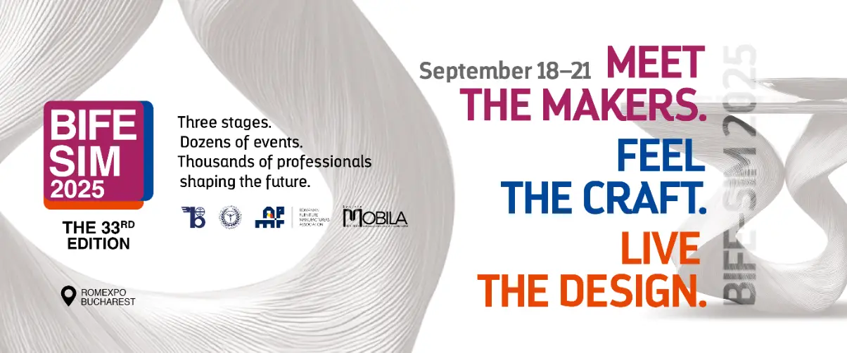 Peste mai puțin de o lună, între 18-21 septembrie 2025, Romexpo devine din nou epicentrul industriei românești de mobilier. BIFE-SIM 2025 promite să fie o ediție de referință, reunind întreaga comunitate – de la producători, arhitecți și designeri, până la furnizori și lideri de opinie.