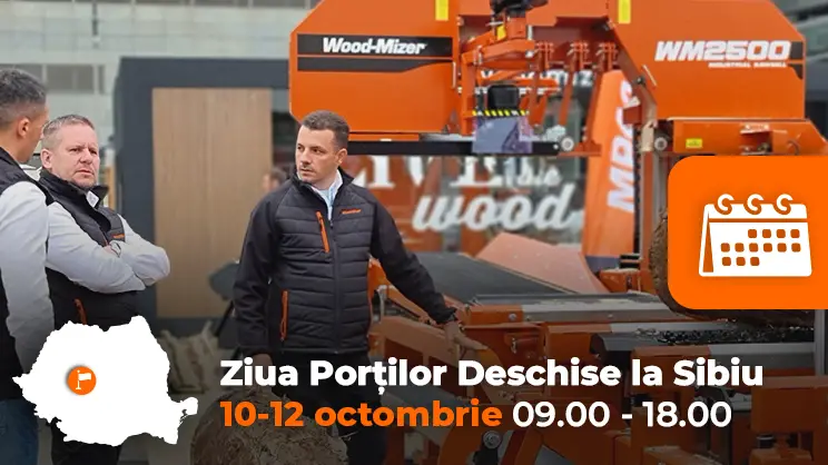 În perioada 10 – 12 octombrie 2025, Wood-Mizer invită toți prelucrătorii de lemn și companiile din domeniu să participe la Zilele Porților Deschise organizate la filiala din Sibiu.