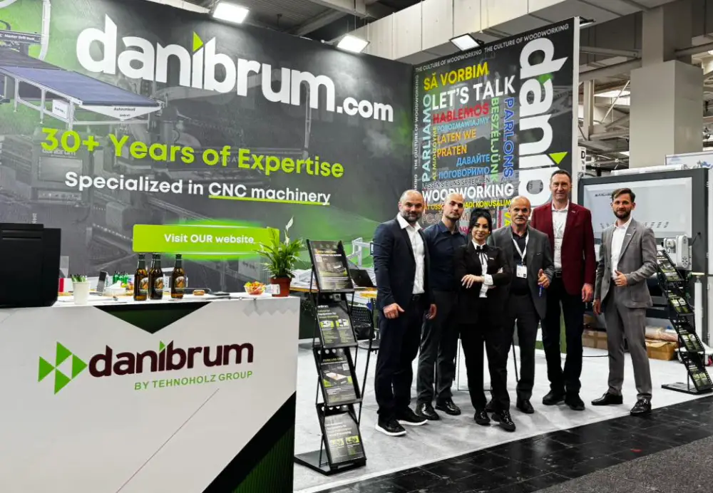 Ligna 2025 a reprezentat pentru Danibrum mai mult decât o participare la un târg internațional. A fost un pas curajos, o declarație de intenție și, în același timp, o confirmare a valorii brandului românesc pe scena globală. “Este o bornă istorică pentru piața industriei de utilaje din România”, subliniază Mihai cu mândrie din biroul său din Comănești. “Cred că în ultimii aproape 30 de ani n-a mai fost nimeni la Ligna ca brand românesc pentru utilaje.” Experiența de la Ligna 2025 le-a depășit toate așteptările. “Am avut o experiență extraordinară acolo. Primii trei vizitatori în standul nostru au fost din Australia, Myanmar și din Africa de Sud”, specifică el. “Ne-am dus să arătăm Europei, chiar lumii, că noi în România avem soluții foarte bune. Noi, la Danibrum, am proiectat utilajele, cel puțin pentru mașinile de șlefuit și pentru CNC-uri.”