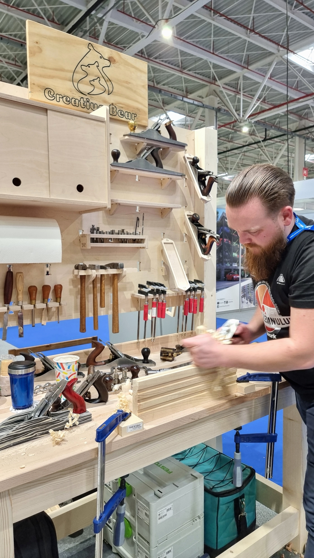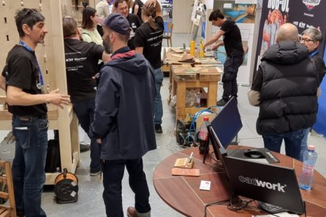 Während der gesamten Veranstaltung herrschte reges Treiben im praktischen Vorführbereich, in dem sowohl die angekündigten Workshops - Handweben, Furnierweben und gebogenes Laminieren - als auch viele andere interaktive Aktivitäten stattfanden, die das Publikum anlockten. Hier, Mihai Ursu und Fane Pănăzan präsentierte auch ihr neues Prinsoro-Konzept, ein innovatives Organisationssystem, das jeden Raum - von der Werkstatt bis zur Küche - in eine aufgeräumte und effiziente Umgebung verwandeln kann.