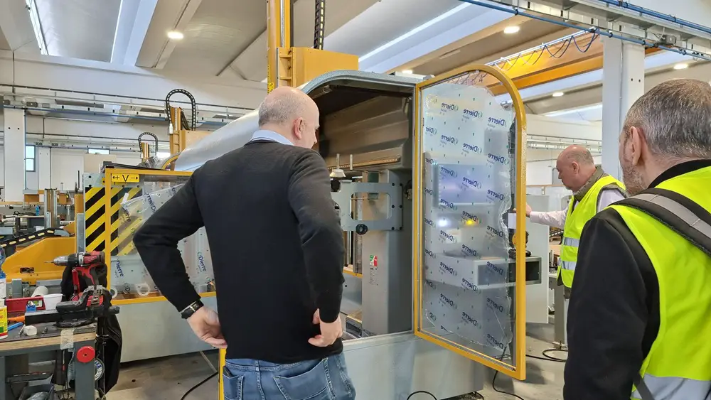 Das Besondere an Essetre ist nicht unbedingt seine Größe, sondern seine Flexibilität. Jede Maschine ist maßgeschneidert und auf die spezifischen Bedürfnisse des Kunden zugeschnitten. Sie werden nicht ab Lager geliefert. Und das sieht man am besten, wenn man in die Fabrik geht und nebeneinander Maschinen sieht, die ähnlich aussehen, aber völlig unterschiedlich konfiguriert sind.