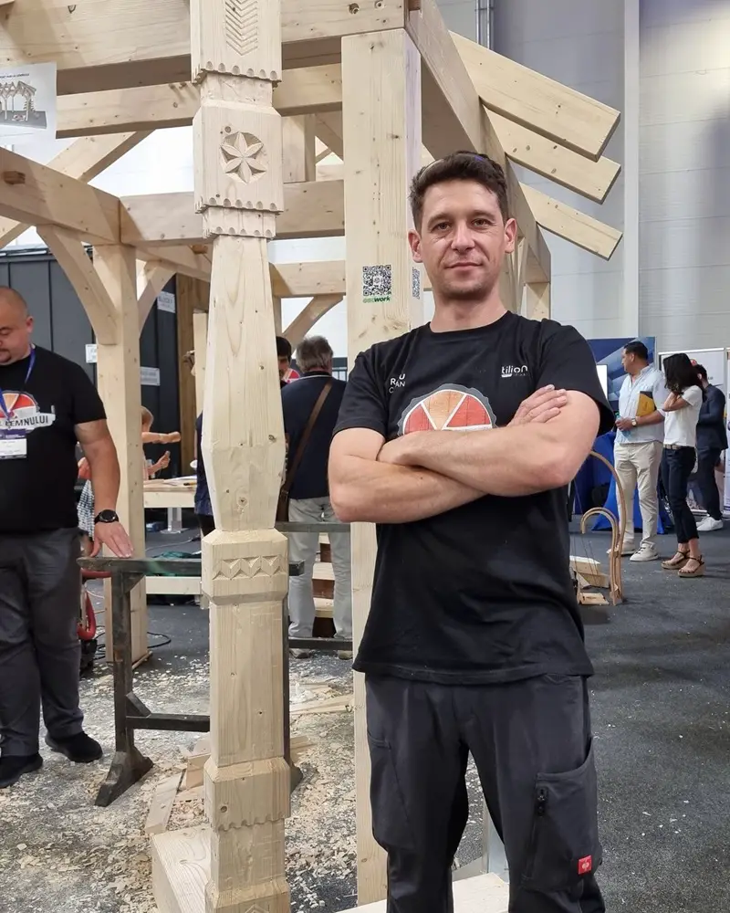 The focal point of our stand was the wooden carport built by Fane Pănăzan - a true technical masterpiece with no less than 52 different traditional joints. Designed by Emil Baciu using CADWORK software, made with glued laminated timber from GLULAM, this project demonstrated that modern technology and traditional craftsmanship are not opposites, but complementary.