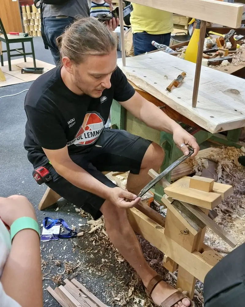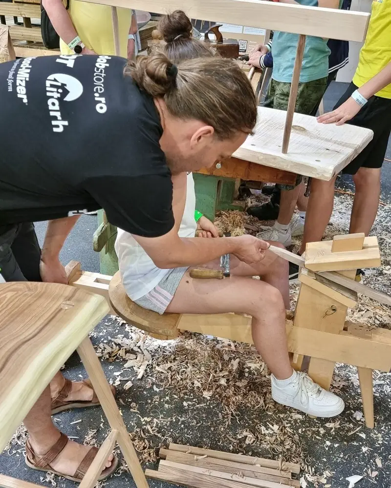 The two Radu's - Vădan and Călian - attracted attention with their theme: "Rudimentary woodworking - furniture and hand-built objects using traditional techniques". The spectacle of seeing functional objects taking shape using only traditional tools and methods handed down from generation to generation was mesmerizing.