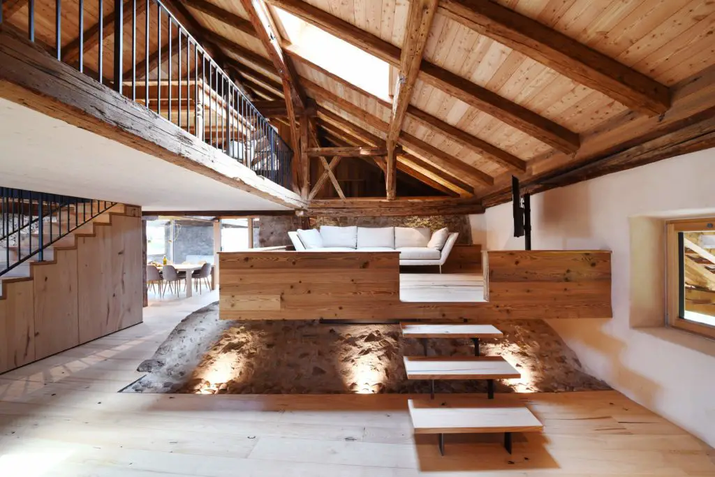Construye con tu propia madera (jueves 29 de enero, 8:00-13:30) explora la escasez de madera local. La granja Rappersbühl en el Renon, de Bergmeisterwolf, utiliza únicamente materiales locales para su estructura, fachadas e interiores. En Val Gardena, una casa plurifamiliar de Mahlknecht-Comploi Architetti demuestra que es posible construir íntegramente con madera local, sin adhesivos, con un alto grado de autosuficiencia energética.