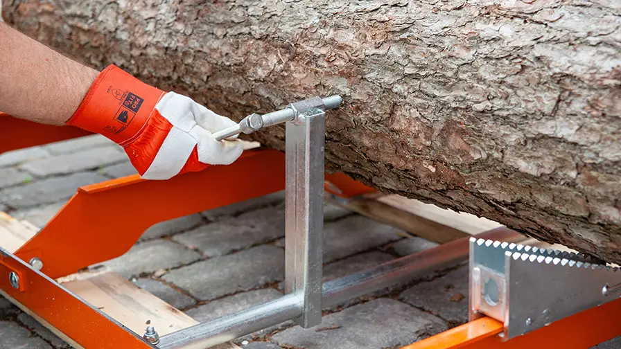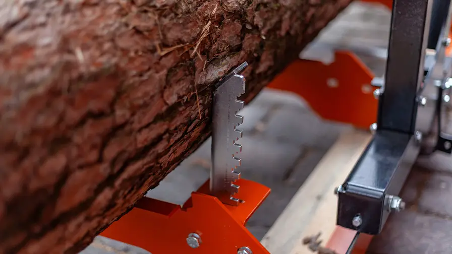 La LX30 è facile da assemblare. Il letto è fissato a travi di legno che mantengono la sega ferma durante il funzionamento. È posizionato in basso rispetto al terreno per facilitare il caricamento dei tronchi. Il pianale è dotato di due spesse guide in acciaio e cinque sezioni trasversali. Una volta caricato il tronco sul pianale, questo deve essere fissato ai due supporti laterali regolabili e bloccato con il morsetto centrale. Ora siete pronti per iniziare a segare!