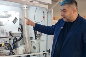 Nella nuova sede di Danibrum a Comănești, dove lo showroom di 1400 metri quadrati ospita un'impressionante gamma di macchine per la lavorazione del legno, Mihai...