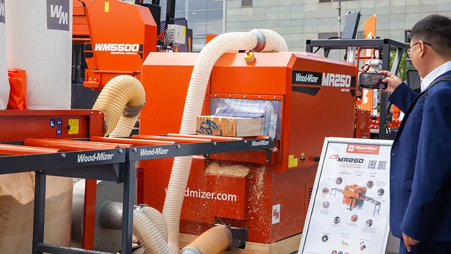 Oprócz linii WM5500, Wood-Mizer prezentuje również piła WM2500w połączeniu z tarczą EG350. Model WM2500, który odniósł sukces w Ameryce Północnej, jest teraz dostępny dla europejskich klientów poszukujących solidnych możliwości przemysłowych w konkurencyjnej cenie. Ta podstawowa pilarka przemysłowa może ciąć kłody o średnicy do 105 cm (szerokość cięcia 84 cm). Okrągła maszyna EG350, łącząca możliwości podwijarki i maszyny wieloostrzowej w jednym urządzeniu. (wydajność cięcia 550 mm szerokości i 100 mm grubości), usprawnia operacje, umożliwiając użytkownikom piły osiągnięcie wyższej produkcji i większej rentowności.