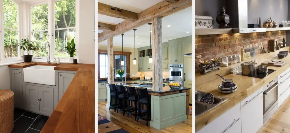 În cazul folosirii lemnului, apare și problema finisării lui. Cum mediul din bucătărie este destul de agresiv, cu multă umiditate, materiale de curățare agresive și abur, este imperios necesar ca materialele de finisare să fie rezistente la astfel de condiții. În plus, lemnul trebuie foarte bine “sigilat” cu aceste materiale, eliminând orice posibilitate ca apa să ajungă la lemn. Uneori, pentru realizarea mobilierului, lemnul este combinat cu panori furniruite, atât pentru stabilitate dimensională, cât și pentru reducerea costurilor.