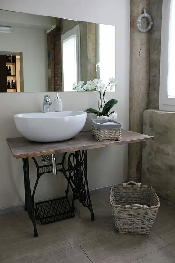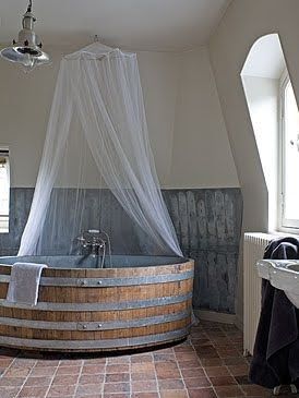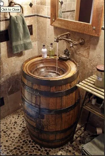 Baia poate fi amenajată și altfel, fie că o dorim rustic sau modern. Pentru o amenajare rustică, butoaiele sunt preferatele. Sunt folosite atât pe post de cadă, cât și de chiuvetă sau mască de chiuvetă. Într-o astfel de amenajare, o felie de trunchi de copac pare perfectă ca suport pentru chiuvetă.
