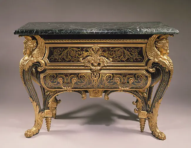 Canapelele și pernele scaunelor sunt acoperite cu materiale de foarte bună calitate – piele, catifea sau tapiserie. Picioarele scaunelor, ale meselor, consolelor sau ale altor piese de mobilier sunt curbe, uneori cu labe de leu la capete. În jurul mobilei apar sculpturi mari, grandioase și oglinzi cu rame din lemn aurit.