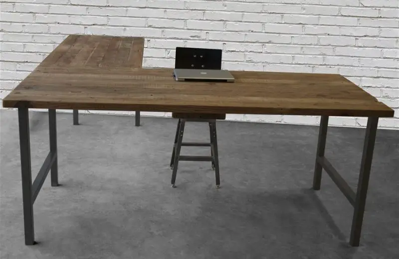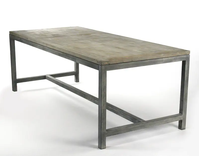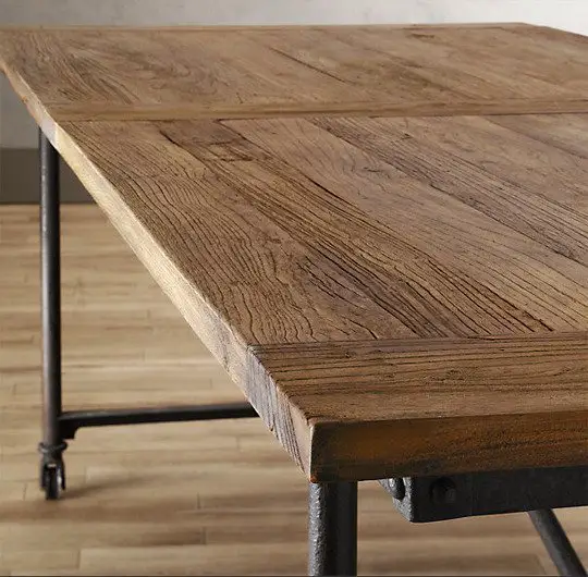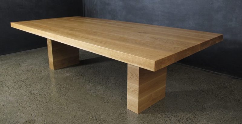 Mesele cu un astfel de finisaj sunt foarte simple ca aspect. Elementul principal este blatul, realizat dintr-o scândură groasă sau dintr-un covor de lemn masiv. Este folosit lemn de esență tare, de tipul stejar, arțar, salcâm, dar nu este exclus să întâlnim și mese din pin. Blatul se sprijină pe picioare simple, dar rezistente, din lemn sau din metal.