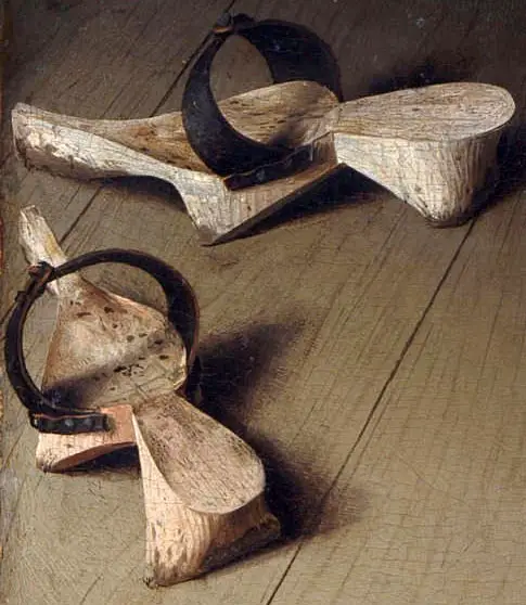Cei mai cunoscuți pantofi din lemn sunt desigur cei olandezi, dar există dovezi a existenței pantofilor de lemn, cu mult înaintea acestora. În Muzeul Clermont din Franța există o pereche de pantofi galo-romani, căptușiți cu blană de oaie, datați secolul al II-lea.