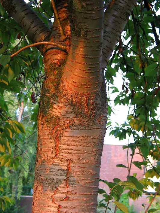 Arborele ajunge la 10-20 m înălțime, cu diametrul de la 0,6-0,7 m până la 1,2 chiar 1,5 m. Trunchiul este drept și acoperit cu scoarță cenușie, subțire și netedă la tinerețe, care se închide, se îngroașă și crapă pe măsură ce arborele se maturizează. Dacă scoarța este rănită secretă o rășină aromată pe care copiii o folosesc frecvent ca gumă de mestecat. Pe lângă gustul plăcut, guma are și proprietăți astringente și antitusive.