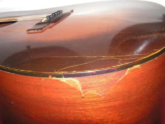 Urma albă rămasă este mai lată decât o zgârietură obișnuită și indică faptul că pelicula s-a desprins de lemn sau straturile de finisaj s-au dezlipit unele de altele și aerul a pătruns între ele, determinând apariția culorii albe.