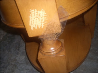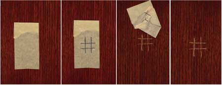 Peste grilă se lipește o bucată de scotch ( se poate folosi și din cel de hârtie), presând ușor deasupra pentru a fi bine lipită pe toată suprafața, după care sa prinde de un capăt și se trage.