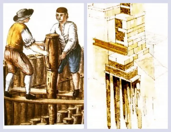 Un alt exemplu de lemn durificat natural sunt stâlpii de susținere ai clădirilor din Veneția. Venetia a fost construită ca o fortăreață împotriva atacurilor barbare. Fiind însă în lagună, pe teren mlăștinos, arhitecții au fost nevoiți să găsească soluții pentru construcții durabile. Și așa au ajuns să construiască pe piloni de lemn. Se spune că Basilica Santa Maria della Salute a fost construită pe mai mult de un milion de piloni din lemn. În timp, datorită sărurilor din apă, aceștia s-au pietrificat, susținând în continuare fără probleme clădirile.