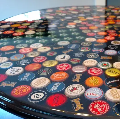 În cazul în care doriți o suprafață mai groasă, faceți înainte un șablon și umpleți-l cu rășină. Se pot pune orice fel de obiecte, ele vor rămâne înglobate în rășină, obținându-se obiecte unice.