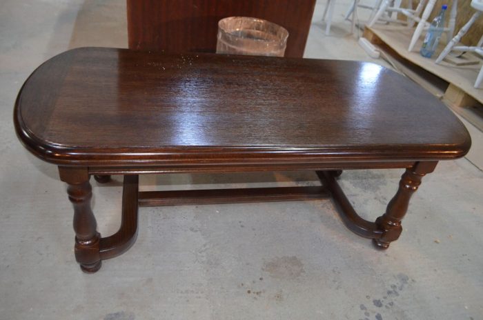La final se aplică un strat de lac, de data aceasta pe toată masa. Dacă există diferență între culoarea blatului și cea a picioarelor puteți uniformiza totul punând puțin colorant în lac (3-5%). Atenție, baițul trebuie să fie compatibil cu lacul (adică baiț pe solvent-lac pe solvent sau baiț pe bază de apă-lac pe bază de apă). Este bine să lăsați lacul să se usuce până a doua zi pentru a nu apărea imprimări sau alte defecte.