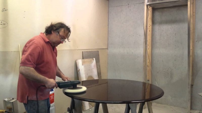 Pentru a polișa se aplică o cantitate mică de pastă abrazivă pe suprafața si apoi se freacă suprafața, prin mișcări de rotație, cu ajutorul mașinii de lustruit. Discurile fine de pâslă ajută ca pasta să se întindă bine pentru a acționa acolo unde este nevoie, fără însă a zgâria sau a strica pelicula. Cum spuneam, se începe cu pastă cu granulație 1000, apoi se continua cu 2000 și 3000. Polișarea se face pe toată suprafața pentru a obține un luciu uniform. Dacă se lustruirea se face numai local este posibil ca acolo să apară o zonă mai lucioasă comparativ cu restul suprafeței. La final particulele de praf sunt îndepărtate, iar suprafața rămâne lucioasă fără a mai fi nevoie să se aplice lac sau alt produs deasupra.
