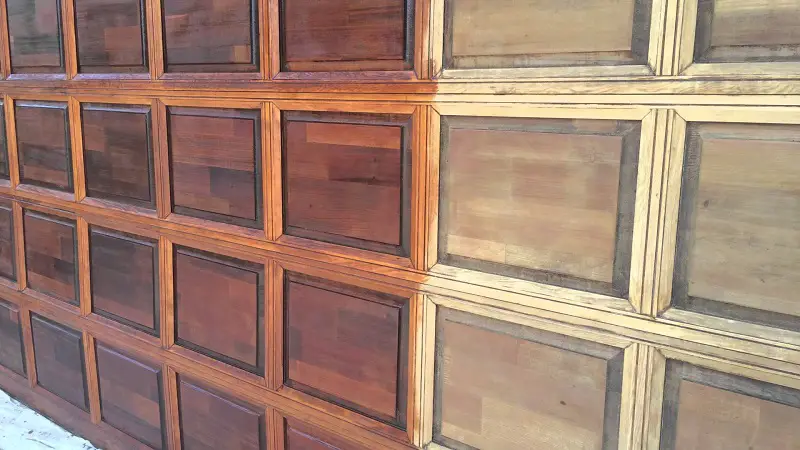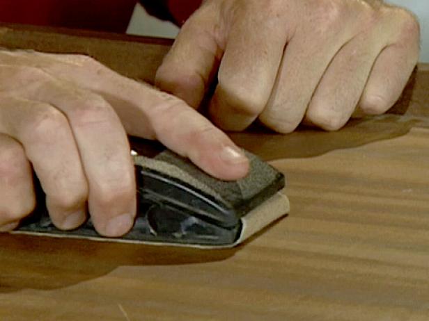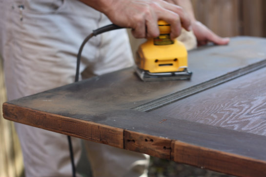 Prima operațiune este șlefuirea lemnului. Chiar dacă s-a făcut șlefuirea în fabrică, lemnul trebuie din nou șlefuit pentru că între timp a absorbit umiditate din aer si fibra s-a ridicat. În plus pot exista pete, imprimări, mici zgârieturi sau alte defecte apărute în urma depozitării. Șlefuirea se face cu hârtie de șlefuit cu granulația între 120 și 180-200, în funcție de esență. Lemnul dur (stejar, fag, nuc) se șlefuiește cu hârtie mai grosieră, cel moale (brad, molid, plop) cu hârtie mai fină. Pot fi folosiți și bureți abrazivi medii. Șlefuirea poate fi făcută și cu mașini de șlefuit simple. După șlefuire ușa se desprăfuiește și se șterge cu diluant obișnuit sau alcool tehnic pentru a îndepărta eventualele pete de grăsime.