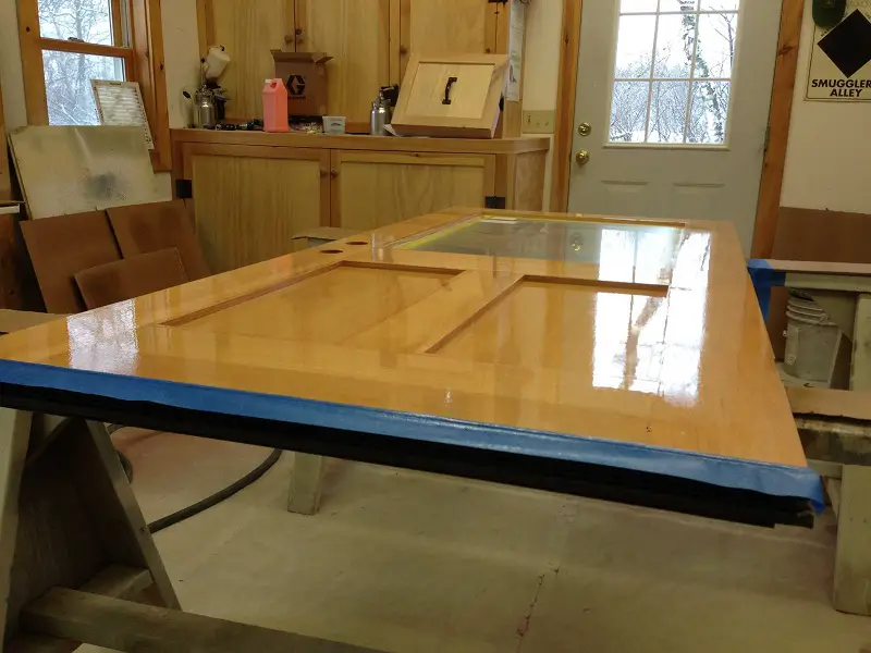 Lacurile și grundurile folosite pot fi de diferite tipuri, mai rezistente sau mai puțin rezistente, cu întărire sau fără. Vă recomand să nu vă complicați cu lacuri speciale, cu duritate foarte mare și mai dificil de aplicat, decât dacă ușa va sta în condiții foarte dificile. Pentru condiții normale, chiar dacă vorbim de băile și bucătăriile din apartamentele de bloc, lacurile hidrodiluabile din magazinele de bricolaj sunt foarte potrivite.