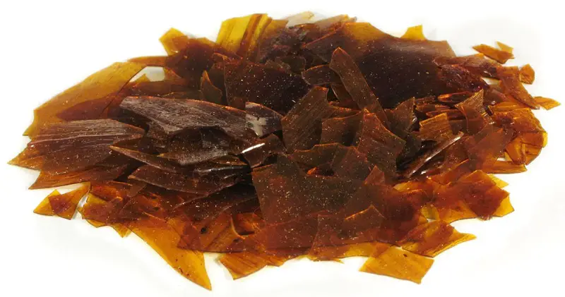 Shellac-ul este o rășină secretată de femela unui gândac numit lac (Keria Lacca) ce traiește pe copacii din pădurile din India și Tailanda. Gândacul se hrănește cu seva copacului și depune pe crengile lui rășina, făcându-și un tunel.