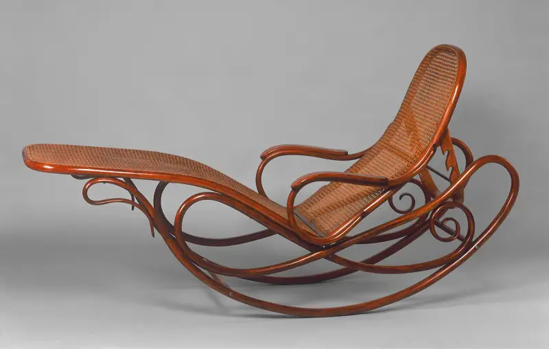 Bătrânul balansoar din imagine a fost fabricat în 1860 de un mare inventator și inovator, Michael Thonet. V-am mai spus câte ceva despre Thonet când am spus povestea celui mai vândut scaun al tuturor timpurilor, cunoscut sub denumirea “Thonet bistro chair nr.14”. Ca și scaunul, balansoarul creat de Thonet este și acum un reper pentru designeri și producători de mobilă din lumea întreagă. De aceea cred că merită puțină atenție și din partea noastră. 🙂