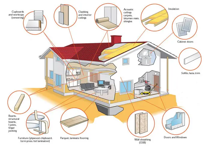În ceea ce privește lemnul și plăcile derivate din lemn există formaldehidă legată chimic în structura adezivilor folosiți la încleiere, dar și formaldehidă sub formă de gaz, nelegată, atât în adeziv cât și în lemn. Această formaldehidă nelegată este cea periculoasă deoarece are tendința de a ieși în exterior. Cu cât cantitatea emanată de o placă este mai mică cu atât acea placă este mai puțin periculoasă. Astfel emisia de formaldehidă este principalul indicator de calitate al produselor pe bază de lemn. Ea reprezintă cantitatea de formaldehidă degajată în aerul inconjurător de o placă pe bază de lemn, prin fețele și canturile sale, în condiții normale sau accelerate.