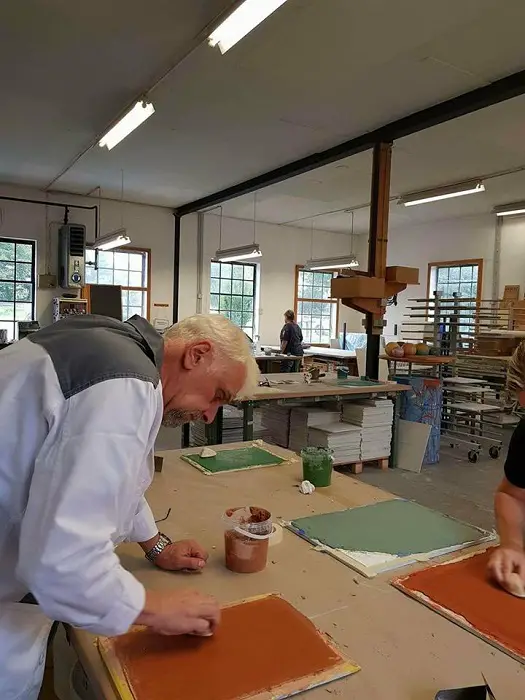 Nu a scăpat de mine și a trebuit să-mi dea (cu împrumut, nu sunt atât de rapace 🙂) cartea scrisă de cei de la Kreidezeit după perioada de documentare din Maroc. Este impresionant ce efort au depus pentru a afla cât mai multe despre materialele folosite, despre tehnici. Și asta nu pentru că marocanii nu ar fi vrut să împărtășească secretele, ci pentru că metoda s-a transmis din generație în generație oral, fără documente scrise, ca majoritatea tehnicilor tradiționale. A fost nevoie să meargă în deșert pentru a vedea bulgării de var și cuptoarele, să urmărească meșterii la lucru, să analizeze pietrele, ceara, săpunul și alte materiale folosite. Și astfel materialele au putut fi reproduse cât mai fidel, iar tehnica a fost învățată direct de la sursă.