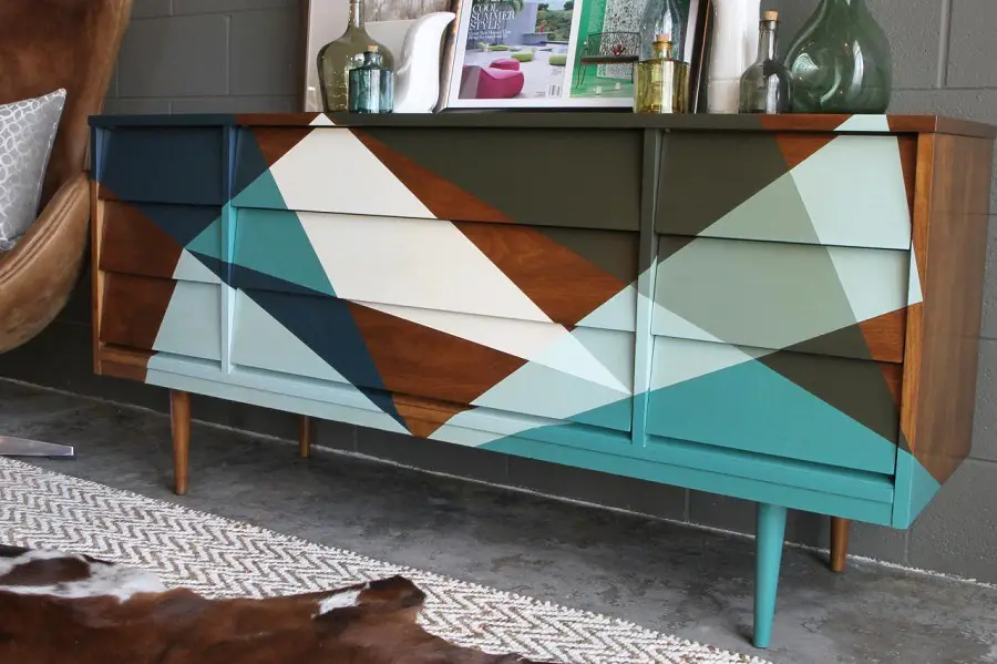- nu este nevoie să vopsiți total o mobilă pentru a-i schimba aspectul. Luați exemplul fabricilor care fac mese cu cadrul vopsit, dar blatul nu, sau comode și dulapuri de bucătărie cu polițe nevopsite. Puteți folosi metoda si pentru a transforma o mobilă cu design clasic într-una modernă sau pentru a aduce puțină culoare în casă.