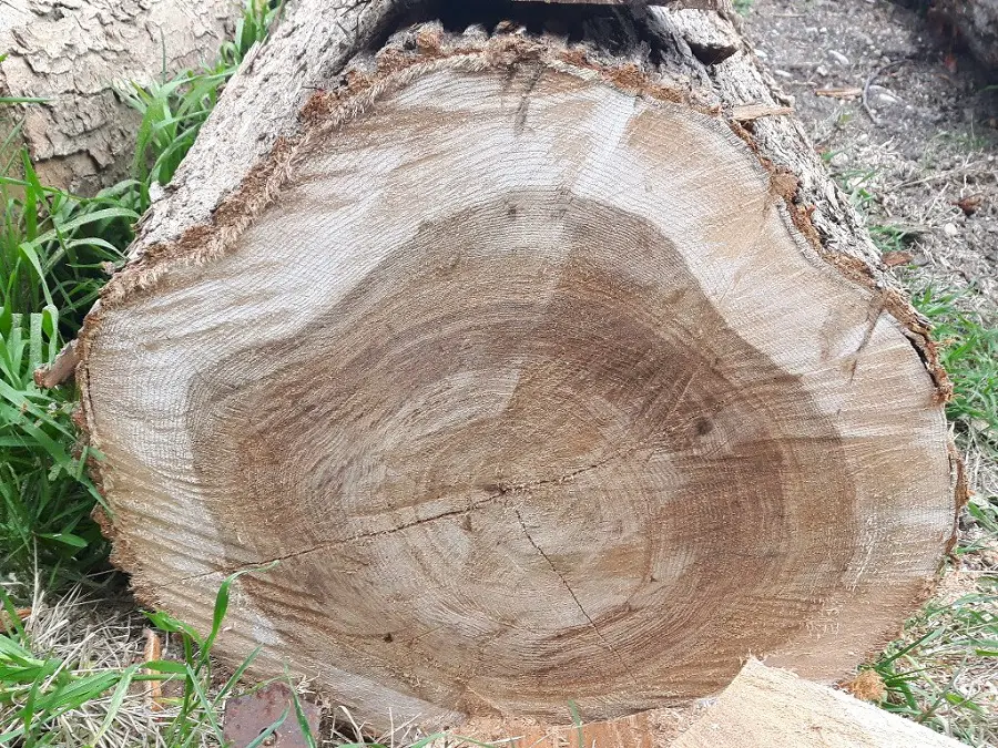 În secțiune transversală zonele de alburn și duramen sunt bine delimitate. Alburnul are o culoare deschisă alb gălbuie, iar duramenul este colorat brun roșcat, cu variații de la foarte deschis la închis.
