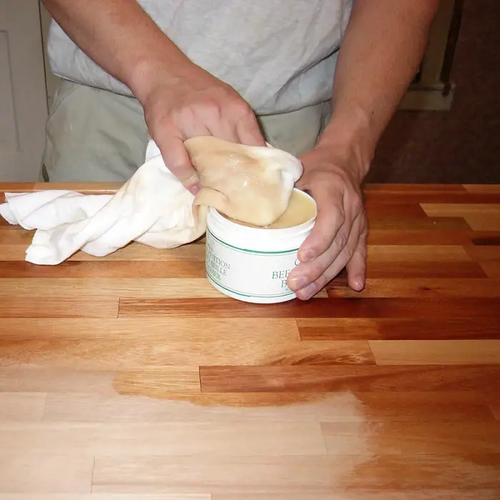 Dacă este prea tare, încălziți-o puțin să devină mai moale (nu lichidă). Va fi mult mai ușor de întins. Pentru a controla mai bine cantitatea aplicată (în cazul în care este mai moale) puneți ceara în interiorul unei bucați de cârpă și strângeți bine (ca la aplicarea shellac-ului), obligând ceara să iasă prin cârpă.