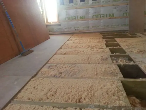 Am vizitat o casă în curs de reamenajare, pentru care au fost folosite multe materiale naturale. Izolarea mansardei și a podului a fost făcută cu fibre de lemn. Proprietarul, o persoană foarte deschisă, ne-a plimbat prin toată casa ca să ne arate toate schimbările care fuseseră făcute, cu mândria celui care reușește în sfârșit să-și vadă visul împlinit. La etaj – un fel de mansardă mai înaltă – am ajuns într-o zonă de pod mică și îngustă. Casa era practic o adaptare a vechii locuințe, în care o parte din pod fusese transformat în spațiu de locuit, podul rămas fiind mic și greu accesibil. Cum izolarea cu covor din fibră de lemn parea foarte dificilă s-a luat hotărârea folosirii fibrelor de lemn individuale.