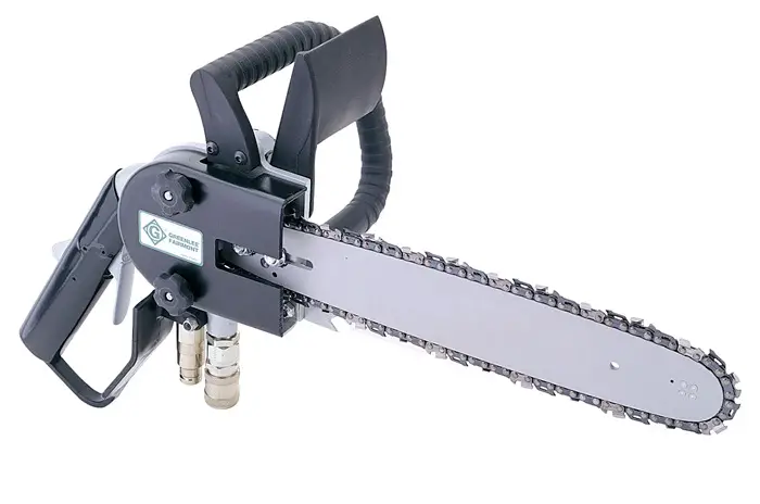 - este mai puternic – viteza de deplasare a lanțului este mai mare ceea ce face ca presiunea aplicată pentru a tăia să fie mai mică;