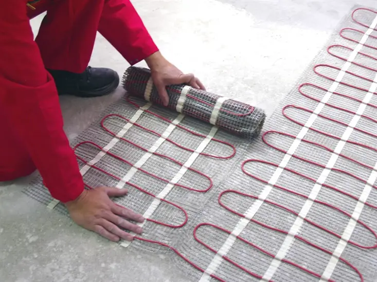 Se realizează montând un gen de covor prin care trec fire electrice. Acesta se taie la dimensiunile dorite și poate fi pus și în cele mai dificile locuri. Este foarte subțire și ușor de montat, de aceea poate fi o alegere bună pentru a instala rapid încălzire în băi și bucătării, fără a deranja restul casei.