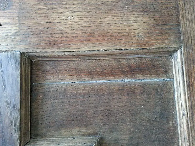 Din păcate, este o problemă care apare în mod obișnuit la ușile vechi care sunt făcute din lemn masiv, nu lemn stratificat. Din acest motiv, variază dimensional vizibil în funcție de umiditatea mediului interior și după zeci de ani. Din cauză că folosim mijloace de încălzire care usucă aerul (calorifere), umiditatea interioară scade foarte mult și lemnul se contractă pentru că cedează din umiditatea lui. Tăbliile ușilor se ”strâng” și dacă marginea nu a fost colorată, devine vizibilă. După ce căldura se oprește, umiditatea aerului crește încet și treptat ușile își revin. Este motivul pentru care tăbliile nu se lipesc și au joc în ramă. Dacă ar fi lipite, contragerea ar duce la apariția crăpăturilor.