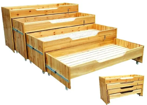 Majoritatea paturilor au o ladă pentru a depozita pleduri, perne și alte lucruri necesare dormitului. Este ideea de la care s-a pornit pentru a salva spațiu. Acea ladă s-a transformat în mai multe rafturi și patul s-a tot înălțat. Și așa a apărut patul ce pare a fi construit pe dulap. O idee pe cât de simplă pe atât de utilă. În loc de pat lângă dulap este pat pe dulap și astfel spațiul salvat este folosit pentru joacă și jucării.