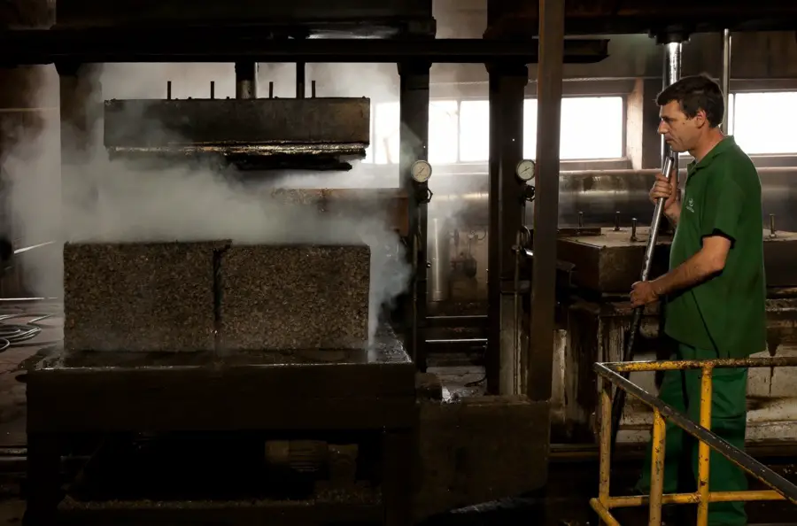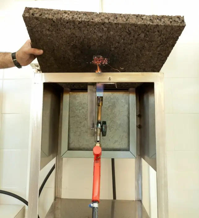 Din resturile rămase de la dopurile naturale – o contitate destul de mare de altfel, 70-75% – se fac plăcile pentru izolarea termică. Resturile sunt mărunțite, puse în forme metalice mari și tratate cu abur supraîncălzit. Caldura activează un liant natural existent în scoarță – suberin – care leagă granulele împreună și le transformă într-un bloc de material expandat.