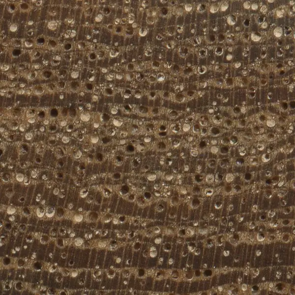 Are inele anuale vizibile și distincte, putând forma desene interesante în funcție de tăiere. Porii sunt rotunzi sau semirotunzi, mari și mai rari în zona de lemn timpuriu, medii și mai deși în cea de lemn târziu. Razele medulare sunt vizibile cu ochiul liber.