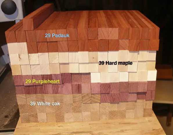 La obținerea panourilor se pot folosi diferite esențe de lemn. Dacă diferența de culoare dintre ele este mare, tocatoarele vor avea desene foarte interesante.