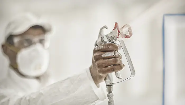 Când se folosesc pistoale electrostatice pentru aplicarea materialelor de finisare consumul este redus cu 50 până la 80% comparativ cu pulverizarea convențională. Datorită încărcării electrice, chiar dacă pulverizarea este făcută din fața obiectului, particulele se așează și pe spatele lui, fiind atrase de câmpul electromagnetic format.