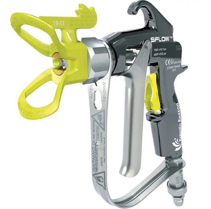 Este cunoscut faptul cț nu se poate obține o calitate foarte înaltă a suprafețelor finisate cu ajutorul pistoalelor airless. Totuși Sames Kremlin a reușit să depășească această problemă cu pistolul airless SFLOW™ 275 & 450. Duza specială face o atomizare foarte bună a materialului și astfel se obțin suprafețe finisate de foarte bună calitate. Pistolul are și o foarte bună eficiență a transferului de material ce poate ajunge la 81%.