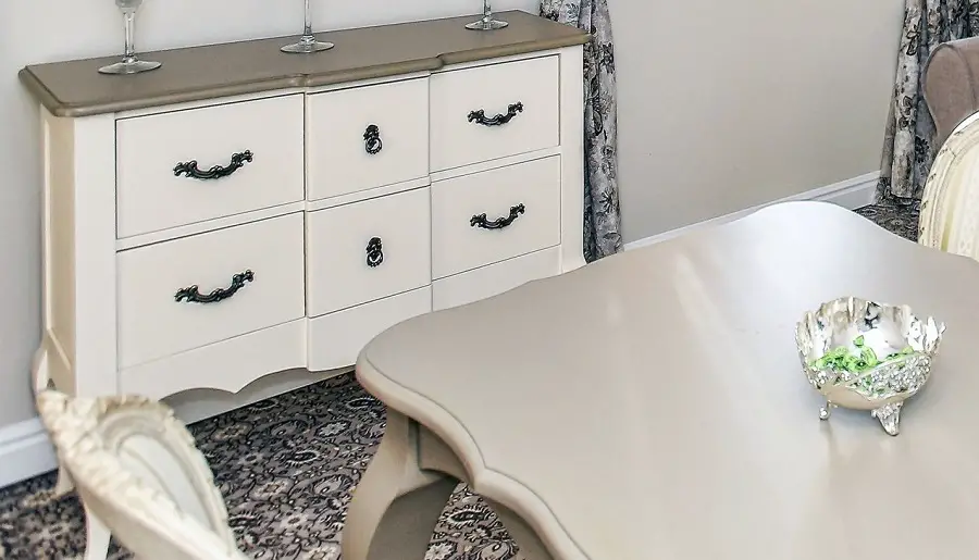Pentru a da un aspect prețios se pot folosi vopsele metalizate. Atenție însă la alegerea și îmbinarea lor pentru că un astfel de mobilier nu trebuie să fie țipător. Chiar dacă sunt alese culorile tari acestea pot fi atenuate cu ajutorul patinelor. Pot fi folosite patine deschise la culoare, albe sau gri, dar și cele clasice, nuc sau nuc închis. Sunt folosite mai mult pentru a crea umbre, a domoli avântul culorii pentru că prețiozitatea este obținută din efectul metalizat.