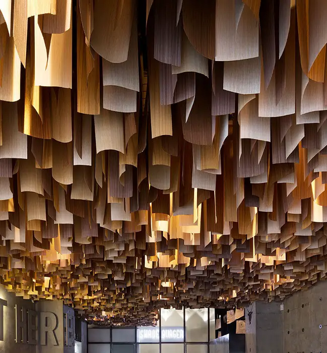 Desenul lor natural foarte frumos, culorile deosebite și faptul că pot fi modelate cu ușurință a atras atenția designerilor asupra furnirelor. Așa au apărut corpurile de iluminat cu abajururi din furnir. Și nu s-au oprit aici. Le-au folosit la decorarea tavanelor, la crearea de paravane sau la decorarea pereților. Astfel de furnire sunt tratate pentru a fi mai plastice sau mai ușor de modelat.