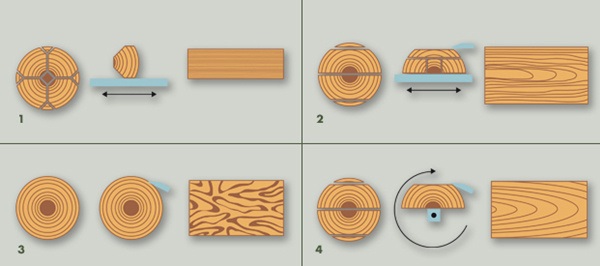 Sunt 4 tipuri principale de obținere a furnirelor: