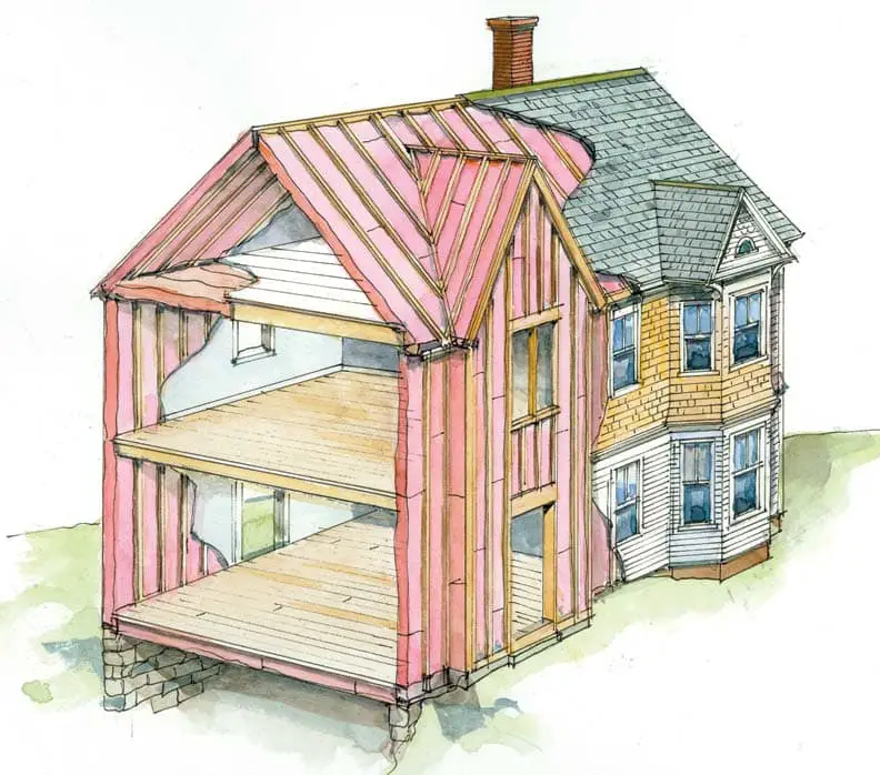 Pereții groși ai caselor vechi sunt deja izolatori. Vechile construcții sunt făcute din cărămizi compacte sau piatră, foarte bune în stocarea căldurii, dar și în transmiterea ei. Așa că tot se va pierde căldură, procesul fiind puțin întârziat. Pereții groși sunt eficienți vara, când căldura este acumulată în timpul zilei și eliberată în casă noaptea, iar fenomenul nu este împiedicat de izolarea exterioară.