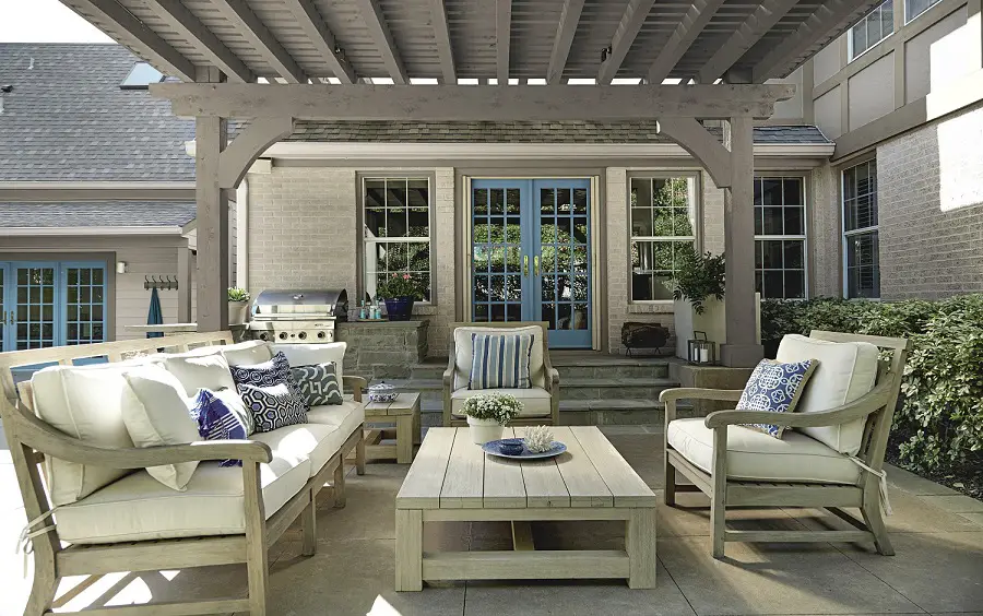Behr Paint propune Blueprint, un albastru prăfuit plin, care arată foarte bine pe o ușă de intrare sau pe mobila de bucătărie.