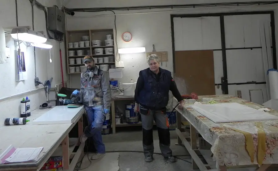 La atelierul de vopsitorie, unde este și CNC-ul, lucrează 8 oameni ce formează, fără nicio urmă de îndoială, o echipă. Sunt tratați cu respect și întorc la rândul lor respectul. Lia ne spunea că de când lucrează în domeniu nu le-a plecat niciun om. Față de început, au crescut echipele încet-incet, atât la vopsitorie, cât și la atelierul unde se asamblează mobila. Toți acești oameni lucrează aici cu plăcere și se vede.