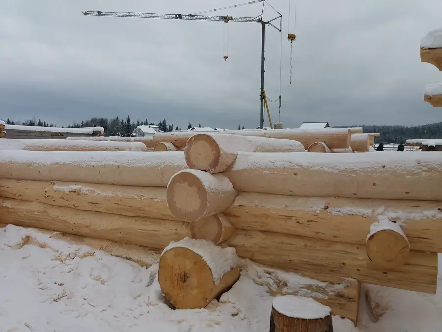Buștenii sunt curățați de coajă manual, cu ajutorul unor cuțite rotunde sau cu ajutorul aburului. În primul caz, aspectul este natural, crestăturile cuțitului dând un aspect foarte autentic. Când este folosit aburul aspectul lemnului este neted și uniform. După curățare sunt făcute prelucrările pentru îmbinări. Buștenii sunt prelucrați pe măsură ce casa se ridică. Procesul are loc la sediul producătorului, acolo unde casa este făcută prima dată. Spun prima dată deoarece casa se construiește de două ori, o dată la constructor și a doua oară la beneficiar. După ce toți buștenii sunt îmbinați, casa este lăsată o perioadă să se așeze, apoi buștenii sunt numerotați și etichetați, casa este desfăcută, încărcată în mașini și transportată pe terenul beneficiarului unde este refăcută.